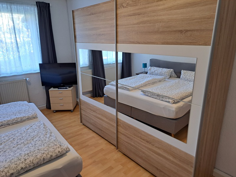 Es stehen zwei Schlafzimmer mit Komfortbettwäsche ( beide Schlafzimmer mit TV) zur Verfügung, sowie ein Wohn-Esszimmer mit TV, DVD-Player und Musikanlage.